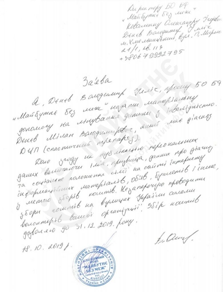 У листопаді 2019 року до нас звернулися батьки Дєнєва Мілана (діагноз ДЦП) з проханням про допомогу у зборі коштів на реабілітацію сину, яка вже втретє буде проходити у м.Варшава (Польша) і коштує 5000 злотих, що у єквіваленті на UAN становить 32000 грн.