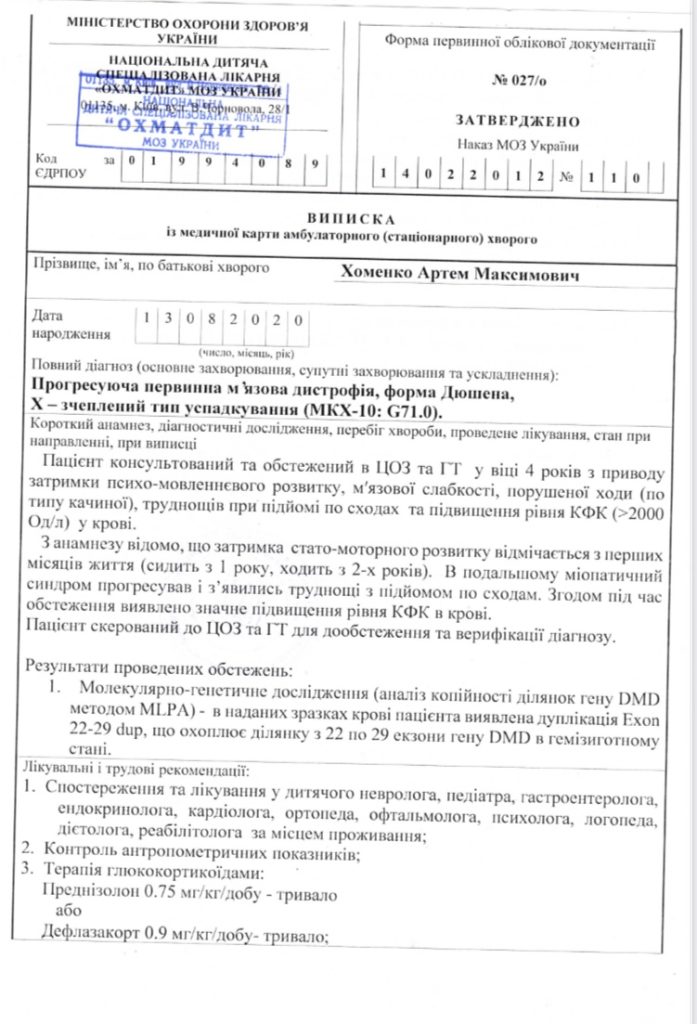 Це серйозне захворювання із швидким прогресуванням м’язової дистрофії, яка в кінцевому підсумку призводить до повної втрати здатності рухатися та смерті хворого.