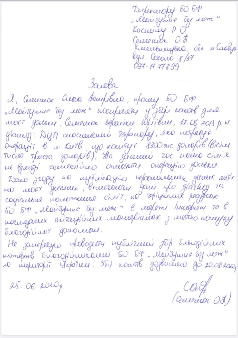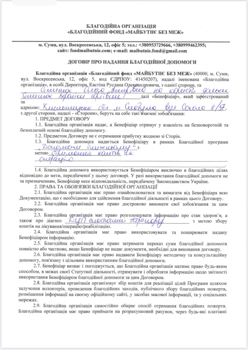 Кожного разу перше знайомство з новим беніфіціаром – це для нас великих смуток від розуміння нестерпного болю від великого горя в сім’ї людей. Але разом з тим це ще і надихає нас та придає нових сил, бо якщо наші маленькі беніфіціари проходять з гідністю стільки випробувань, то і кожен з нас не має права опускати руки перед перешкодами!